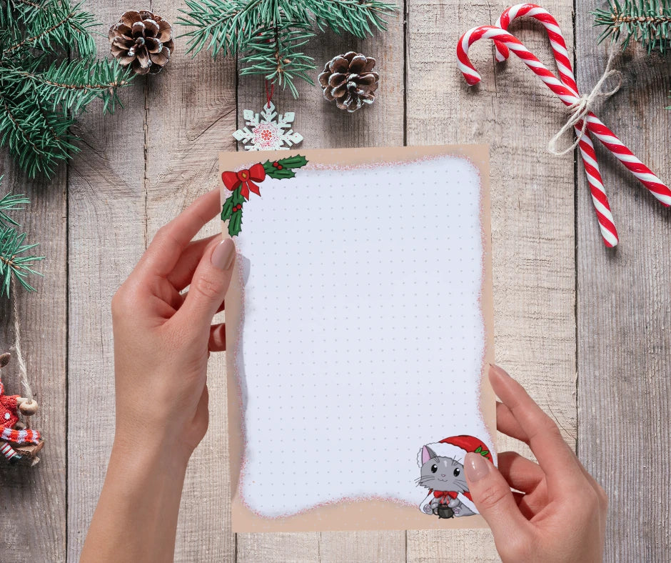 Stell dir vor: Die kleine Katze begleitet dich durch die Adventszeit – nicht nur auf Papier, sondern auch auf deiner Tasse und deinem Schreibtisch. Unser großes Weihnachts-Geschenkset vereint alles, was das Herz für kreative Weihnachten begehrt: handgemalte Sticker, eine Karte, einen Notizblock und eine Tasse.
